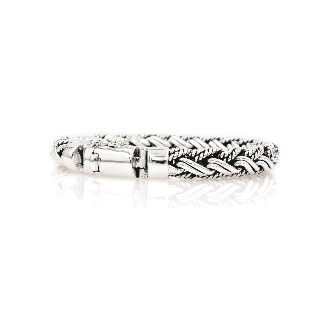 This elegant Tulang Naga Taliair bracelet is crafted from high-quality sterling silver, making it a perfect accessory for any gentleman. The intricate design of the bracelet adds a touch of sophistication to any outfit, making it a must-have for any fashion-forward man. Elevate your style with this stylish and versatile bracelet.