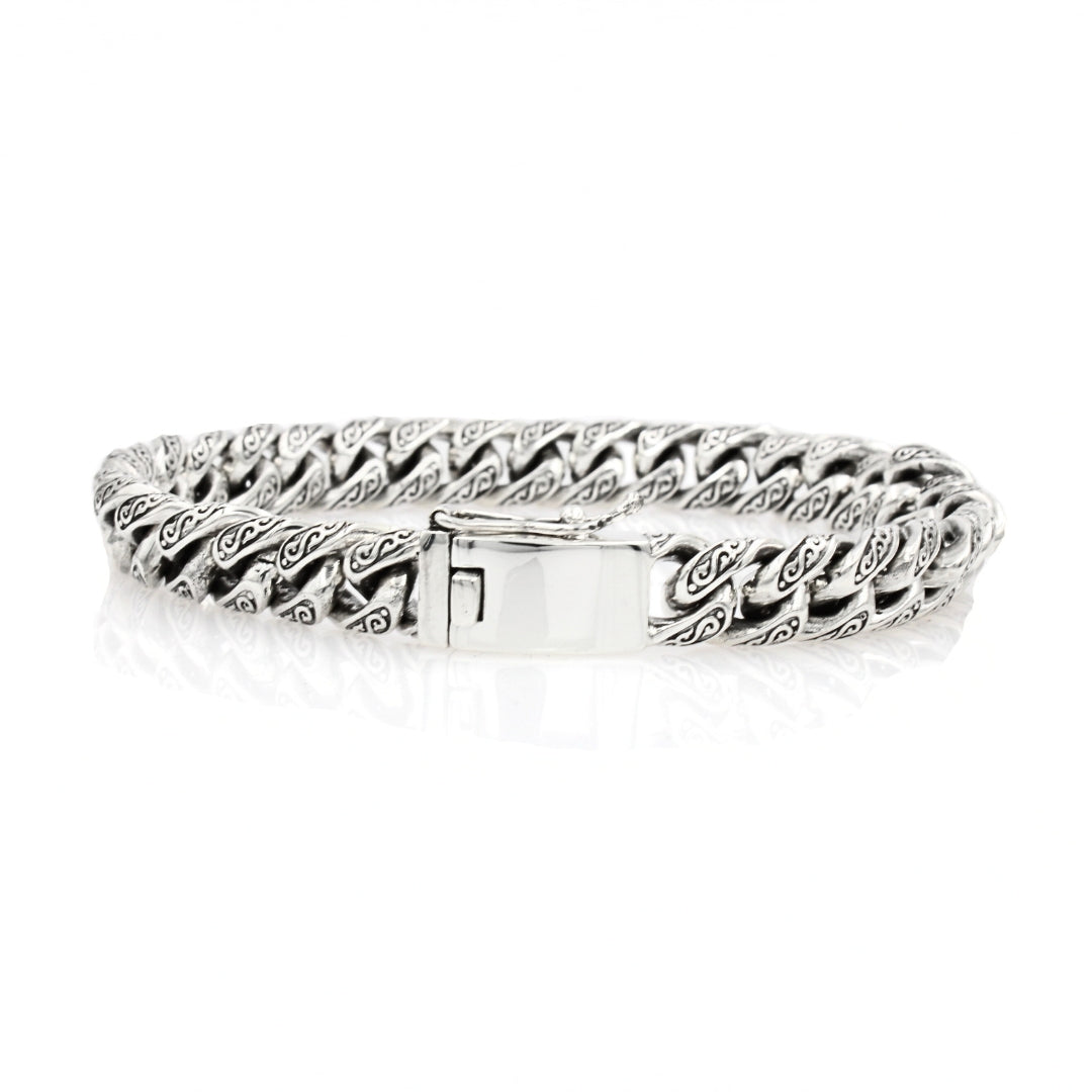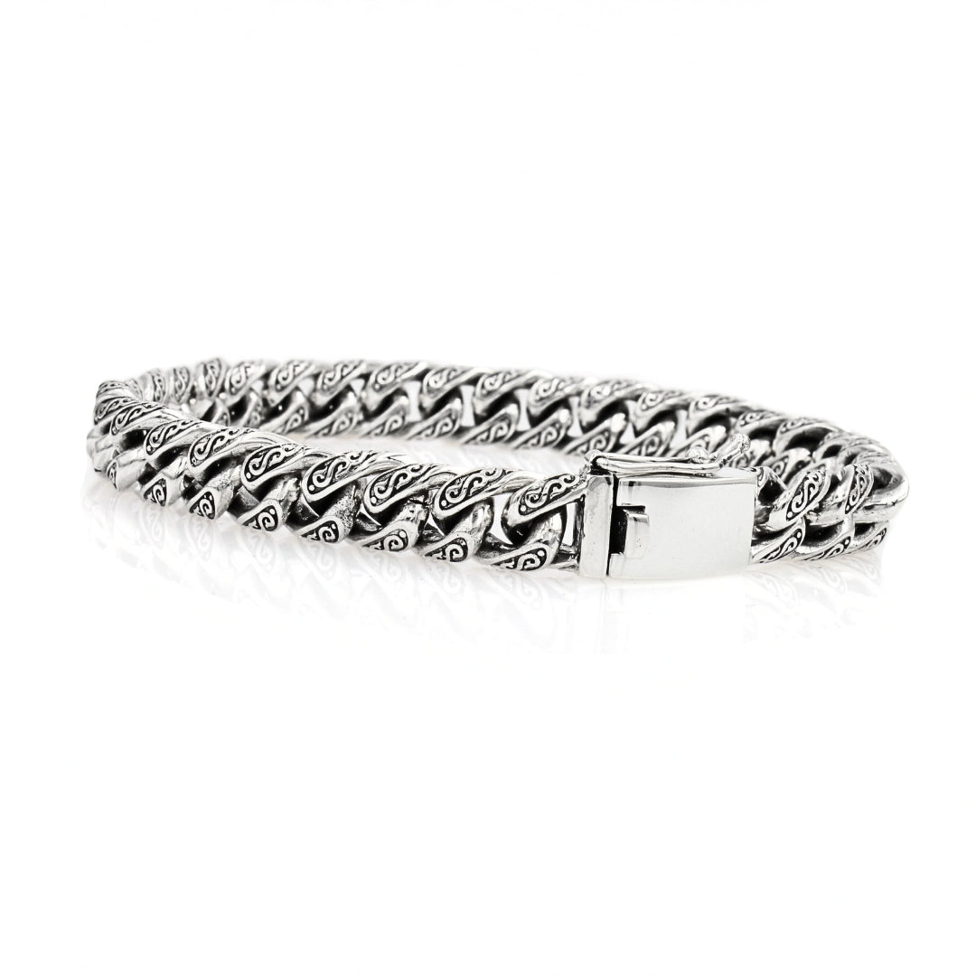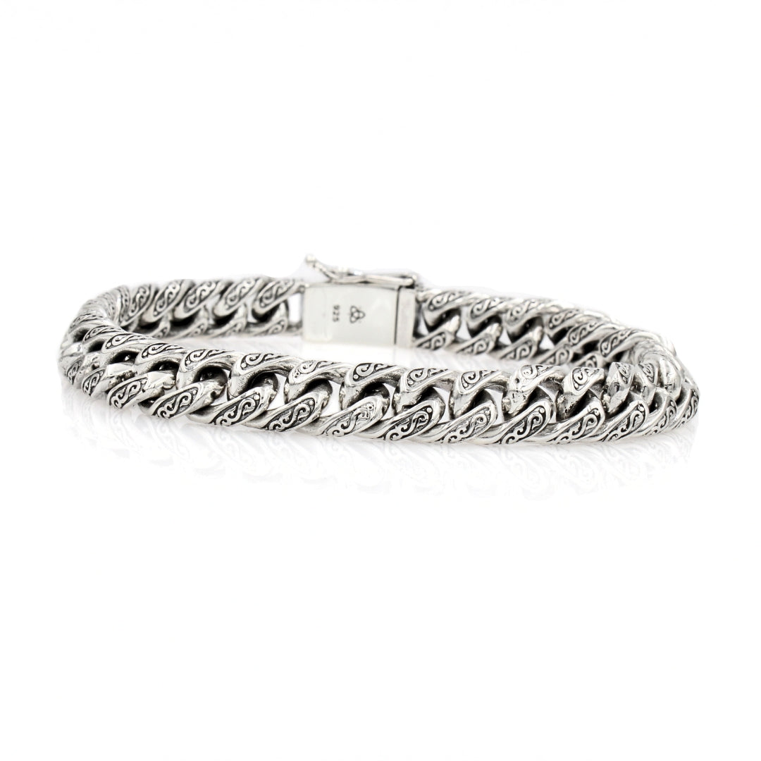 Sterling Silver Cuban Link Bracelet with Motif – 10mm Wide