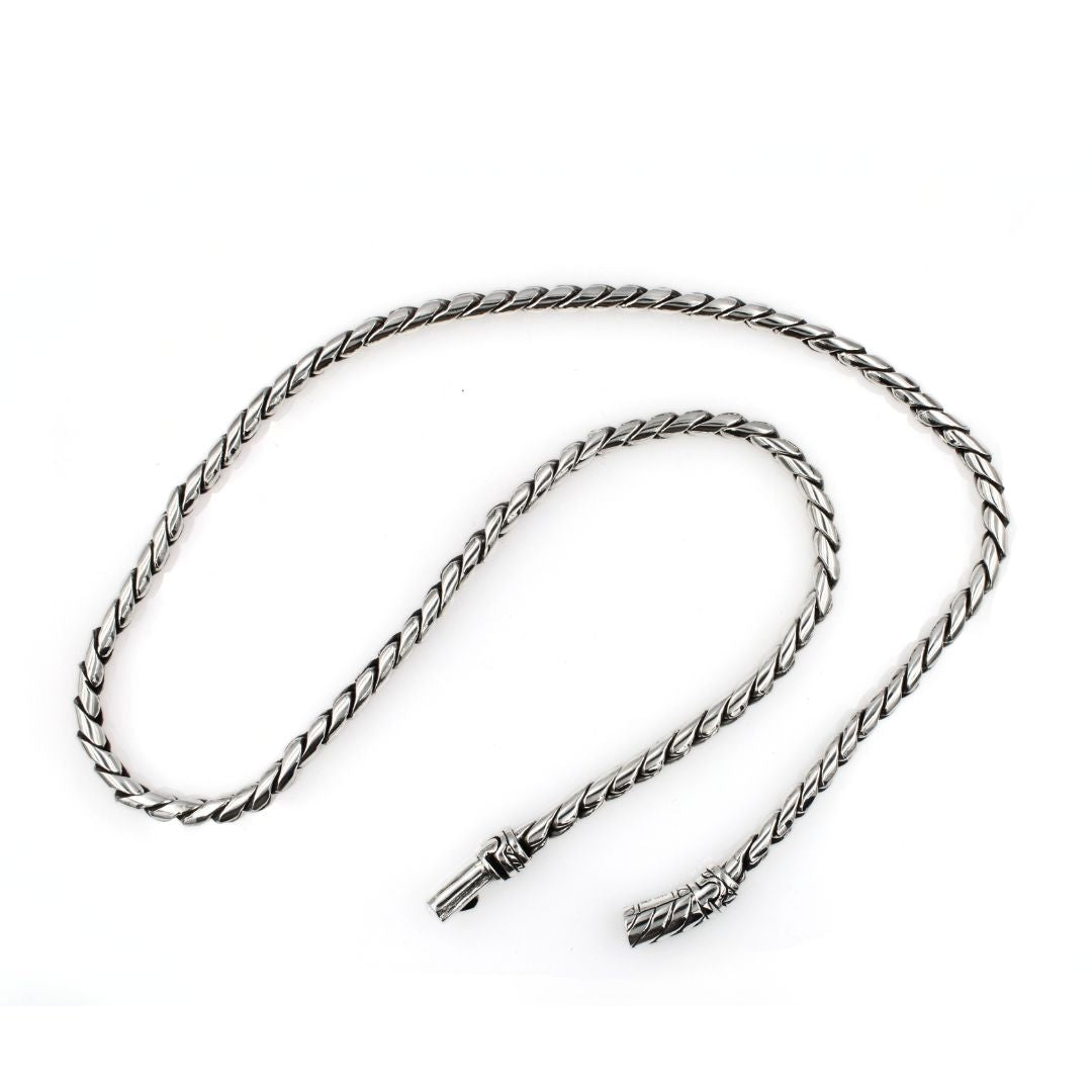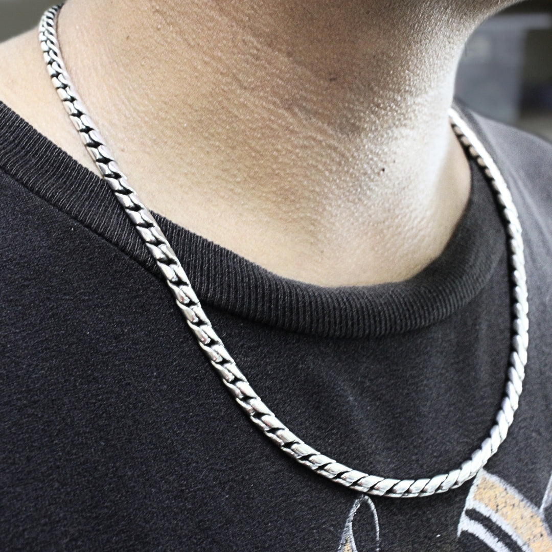 Adorn yourself with this refined Sterling Silver Bekel Necklace, meticulously fashioned from premium 925 sterling silver. The sophisticated 4mm wide interconnected links create a harmonious balance between elegant design and enduring quality. This exquisite chain serves as a versatile adornment suitable for discerning individuals of all genders, enhancing your daily ensemble with understated luxury.